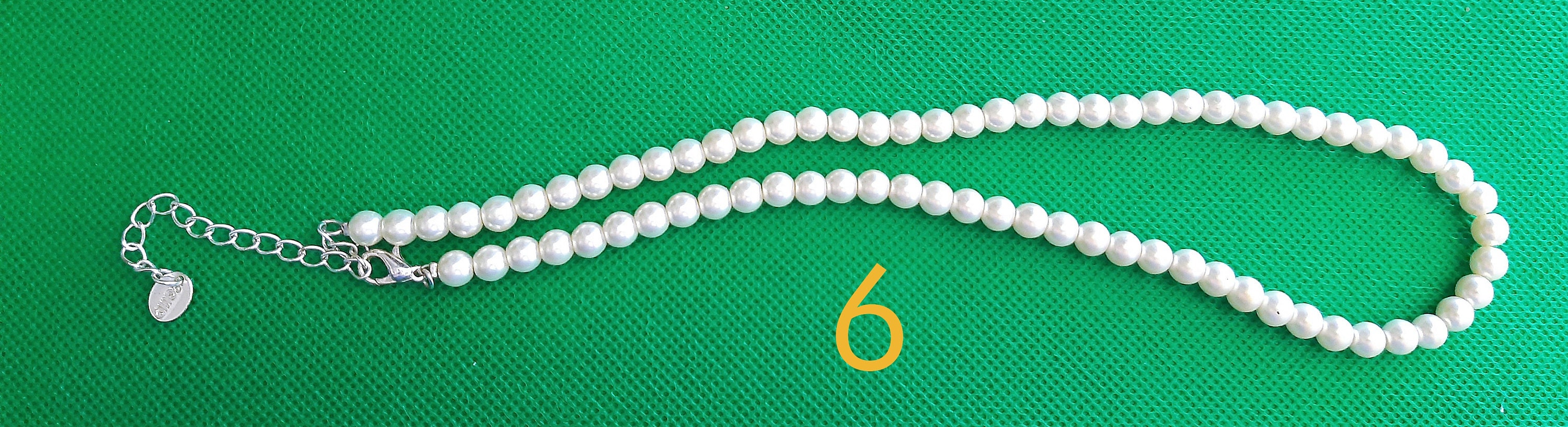 45cm long, Imitation Pearls, 5mm beads. Adjustable. Excellent Condition!
