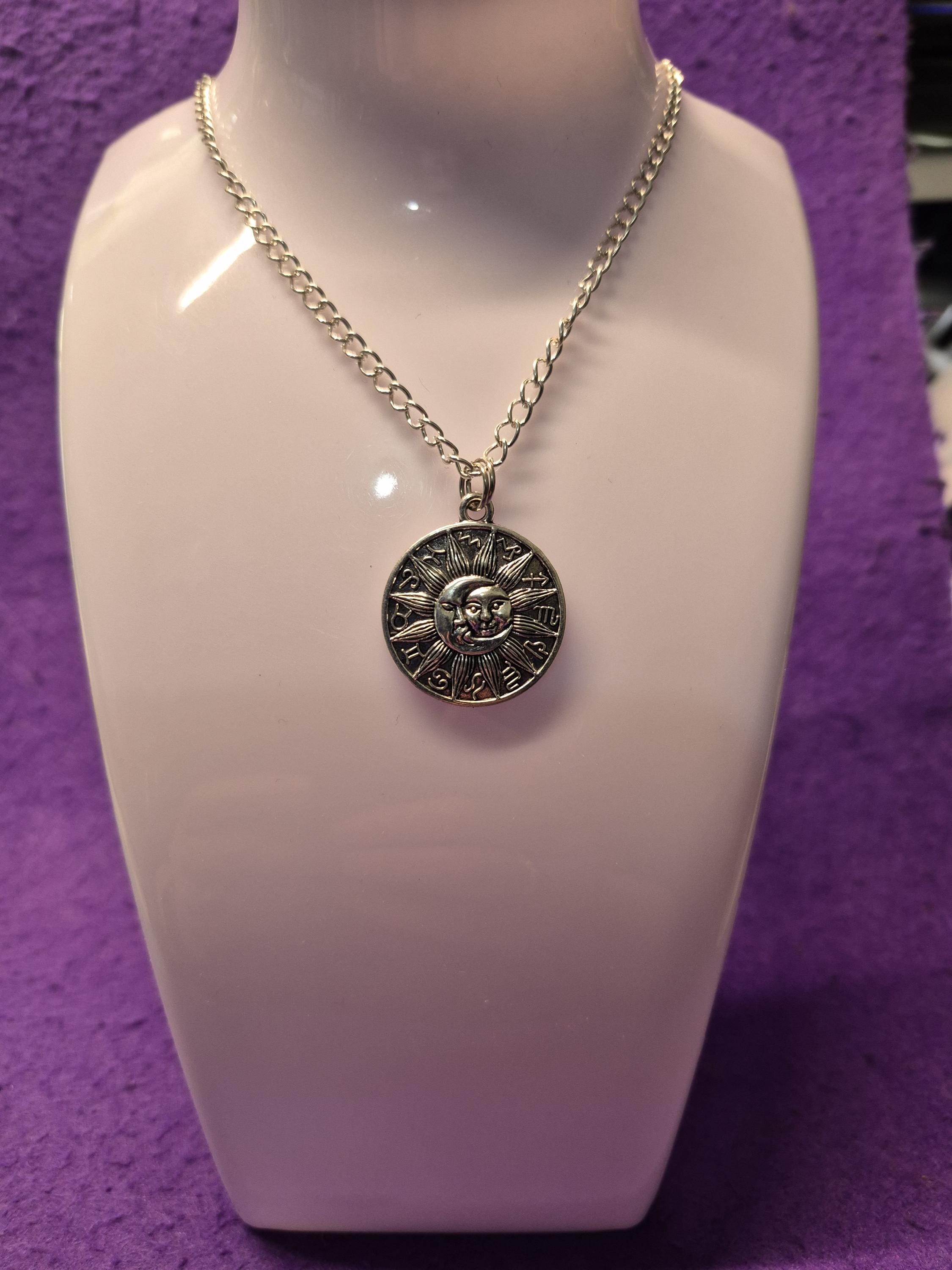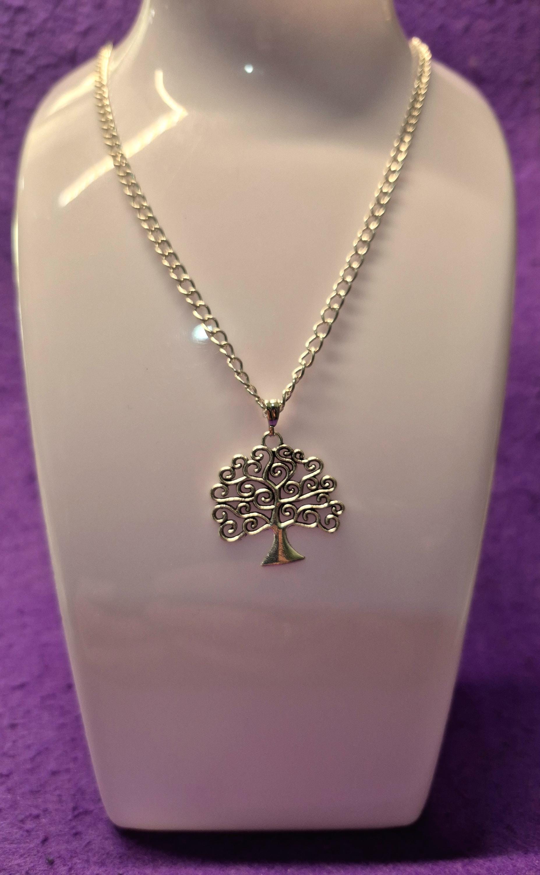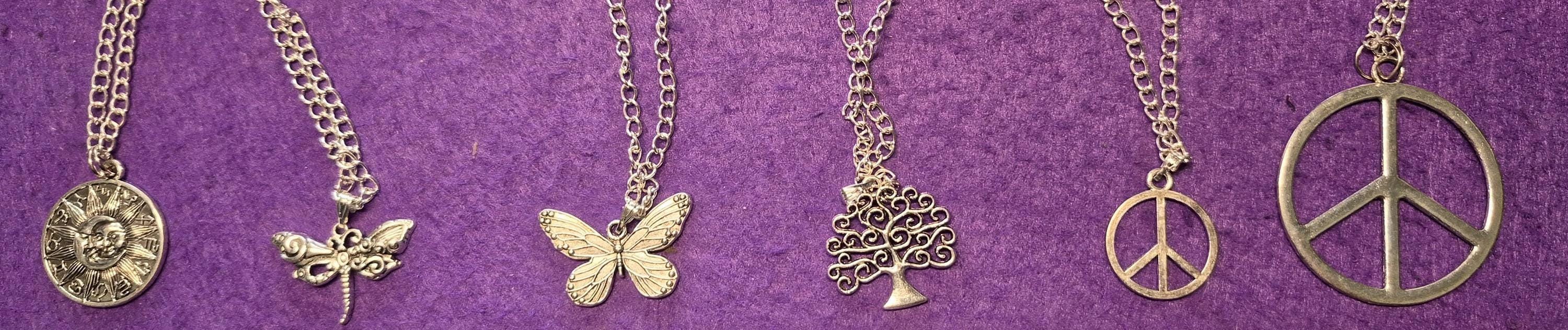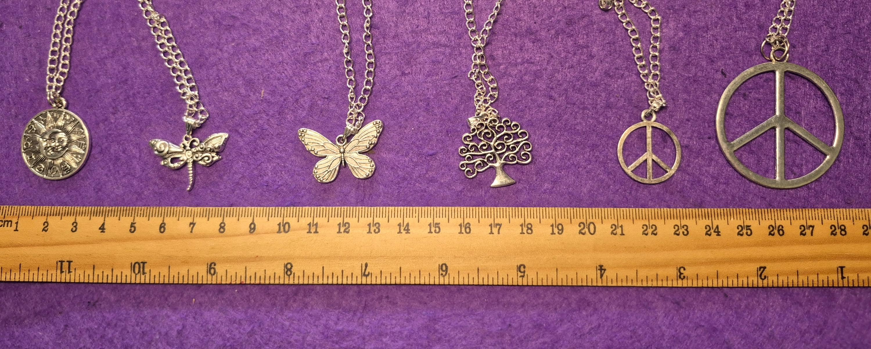 Tree of Life, Peace Symbol, Butterfly, Dragonfly, Sun and Moon, Silver colour Chain Necklace in a velvet bag