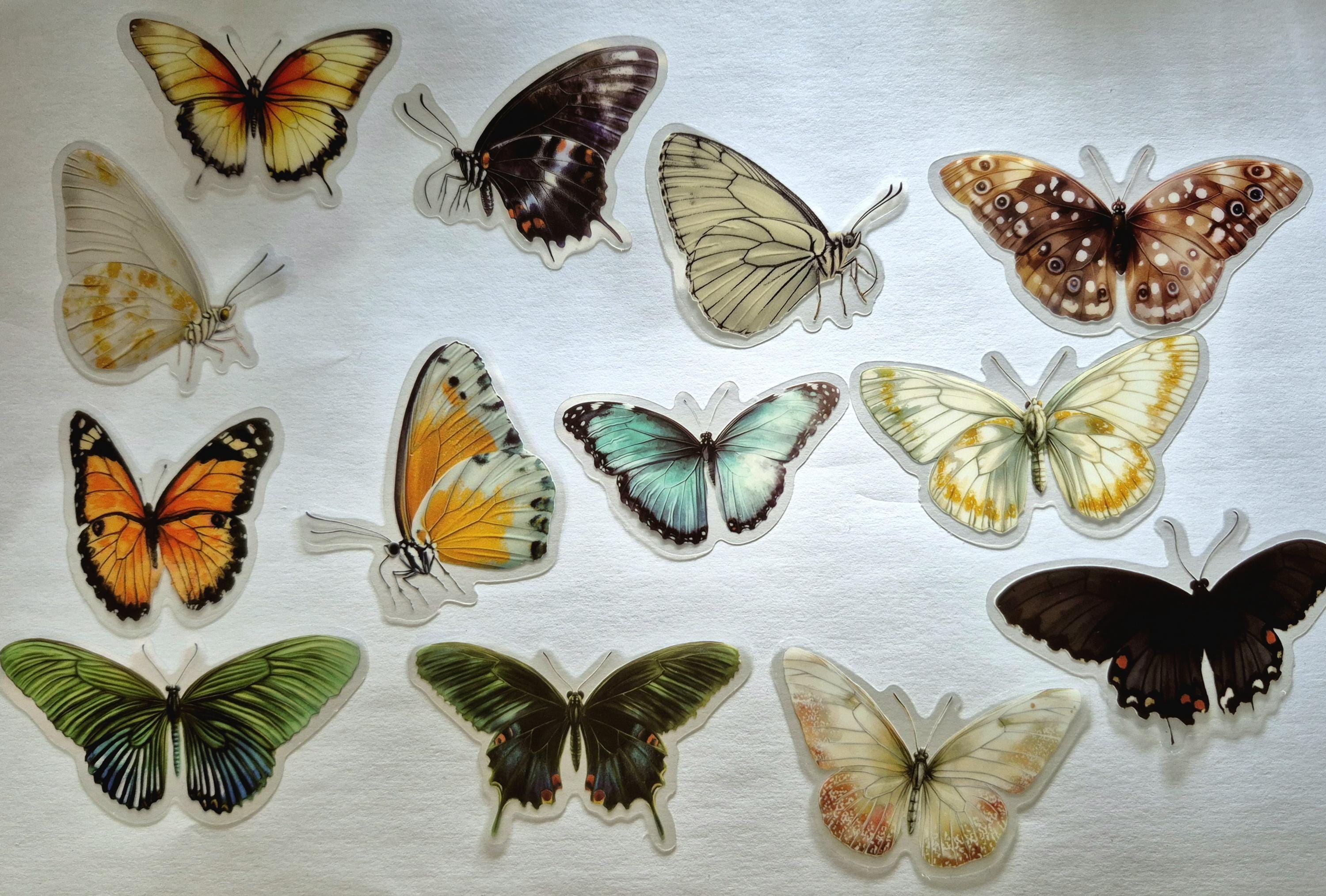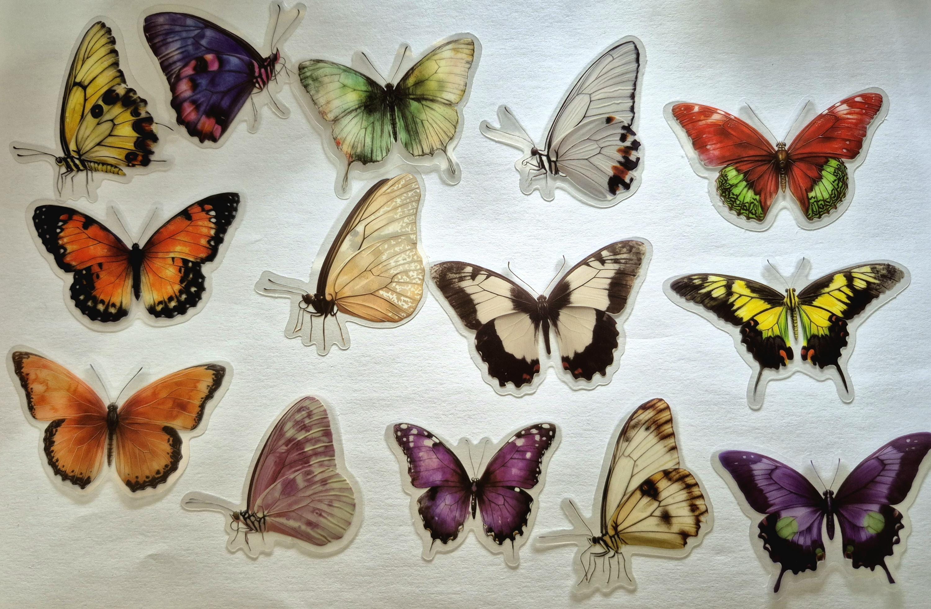 Realistic Butterfly Stickers, Educational Stickers, Plastic Stickers, Journal, Decorative Stickers, Scrapbooking, Label, Diary, Album.