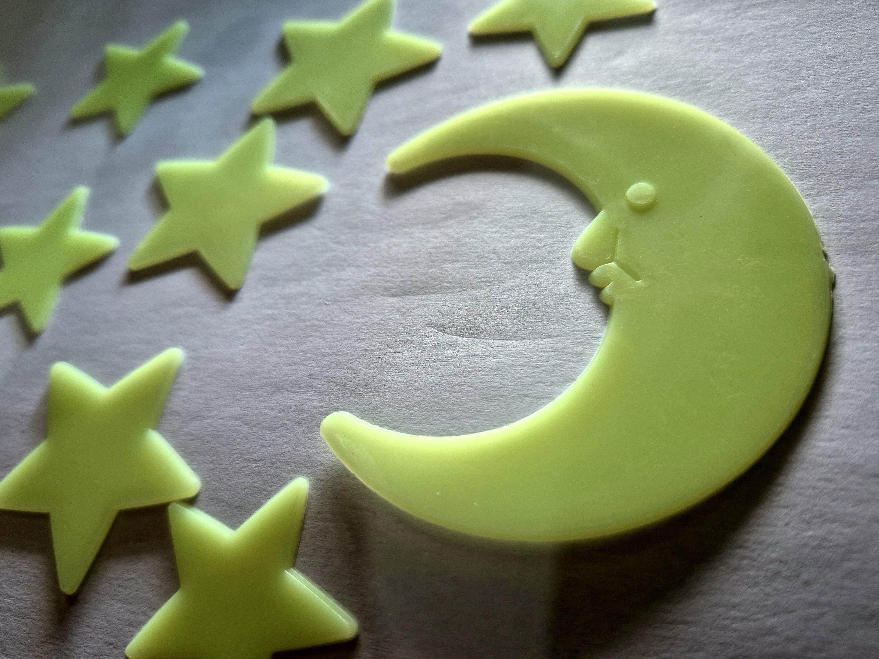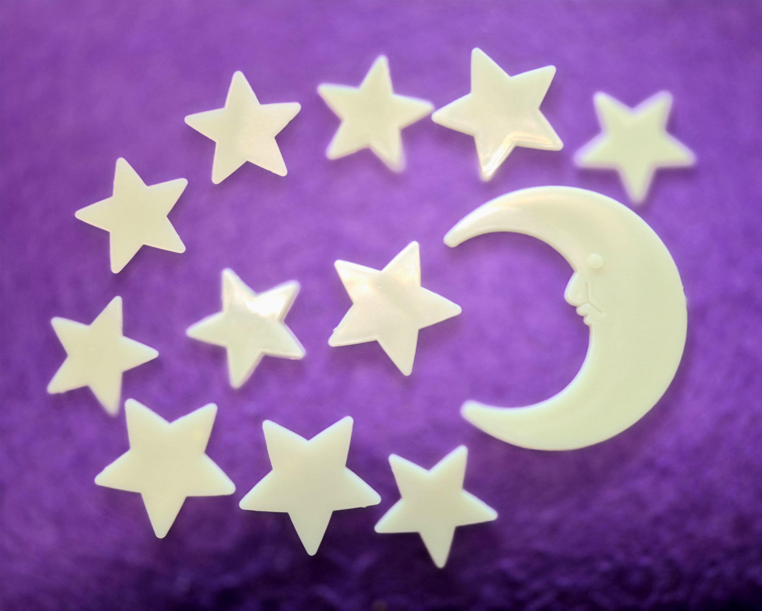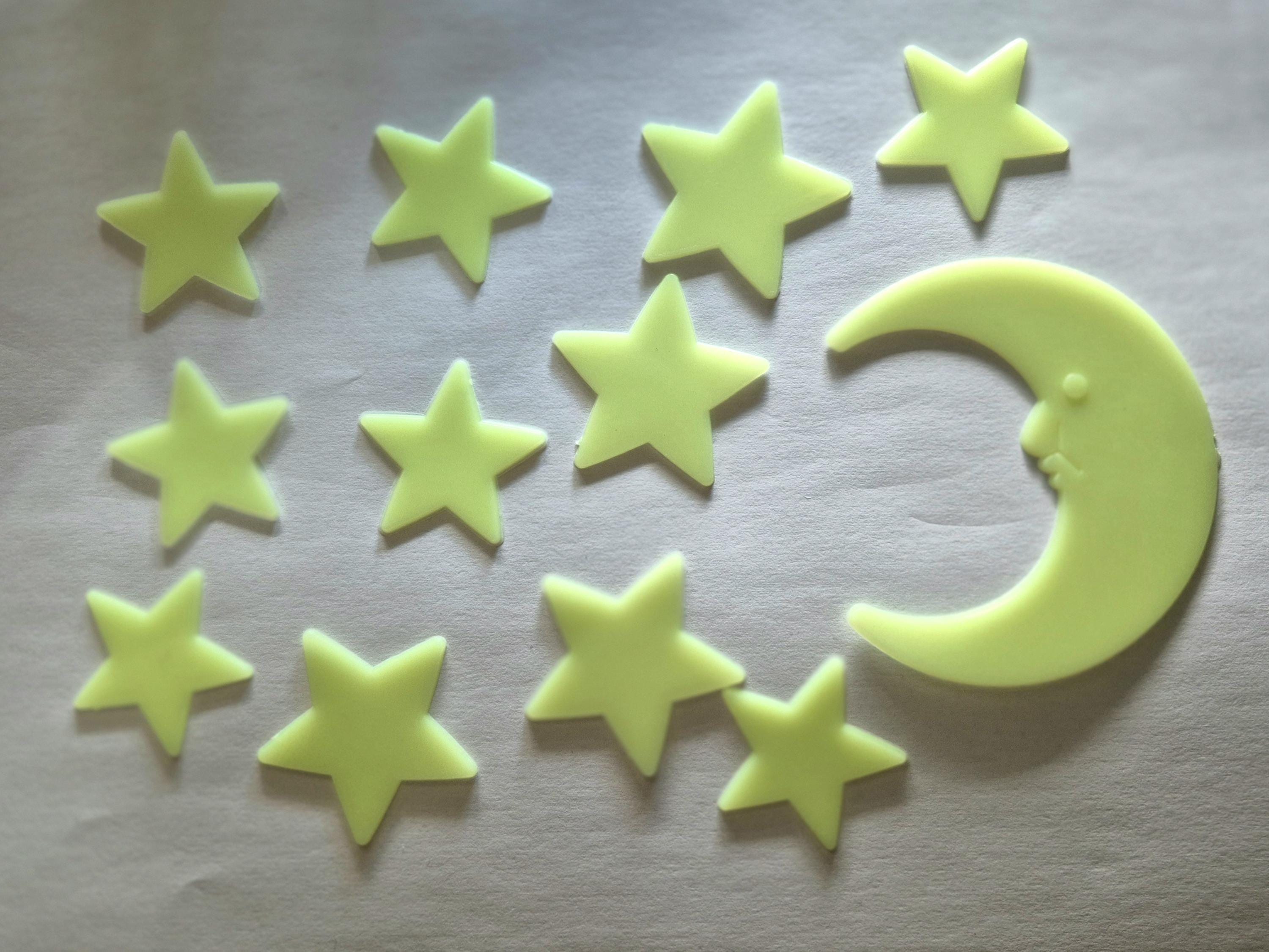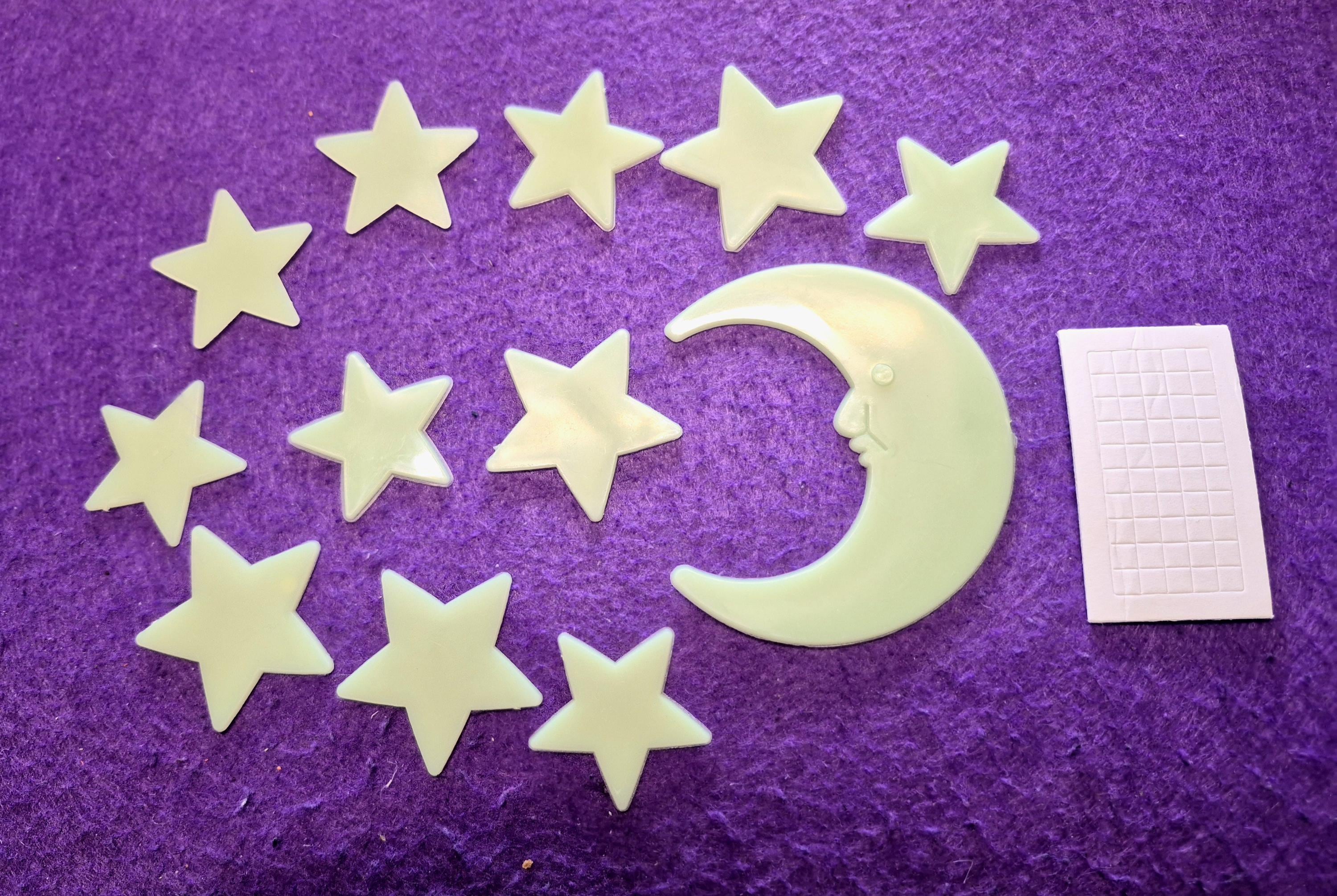 Moon and Stars Glow In The Dark Wall Stickers, Fluorescent 3D Wall Stickers for Kids, Baby Room Bedroom Home Décor Party Holiday Decoration