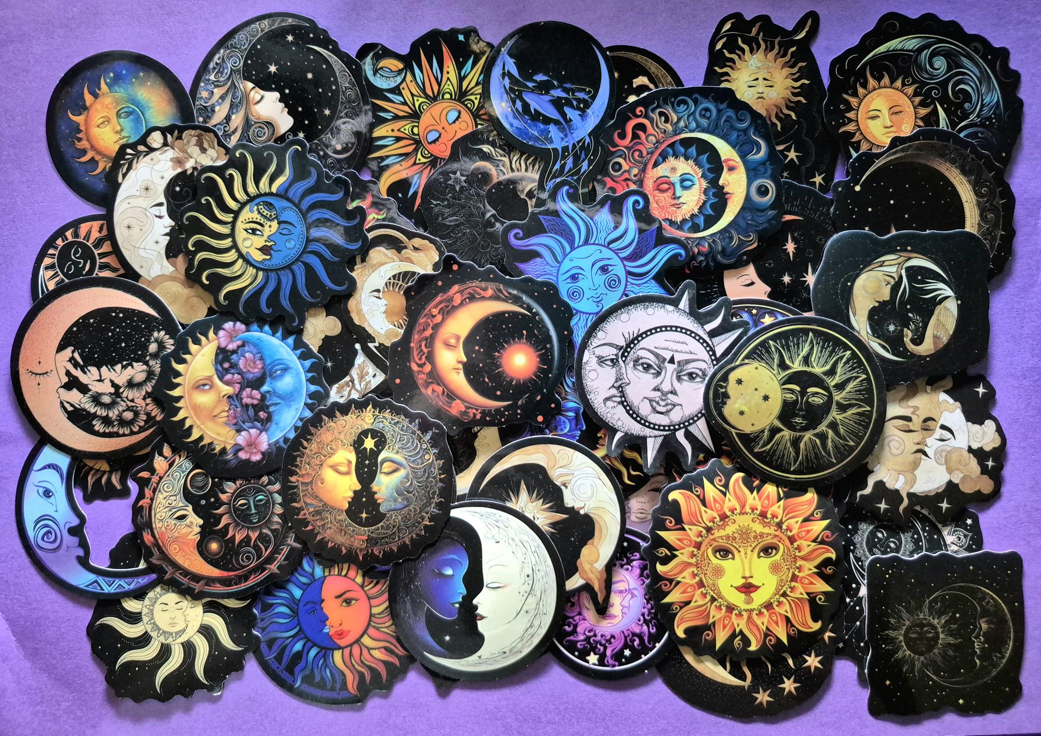 Sun and Moon Cool Boho design, Moon Gothic Cartoon Stickers 25 pieces Mystical Art Decals Scrapbook Laptop Guitar Phone Graffiti Sticker