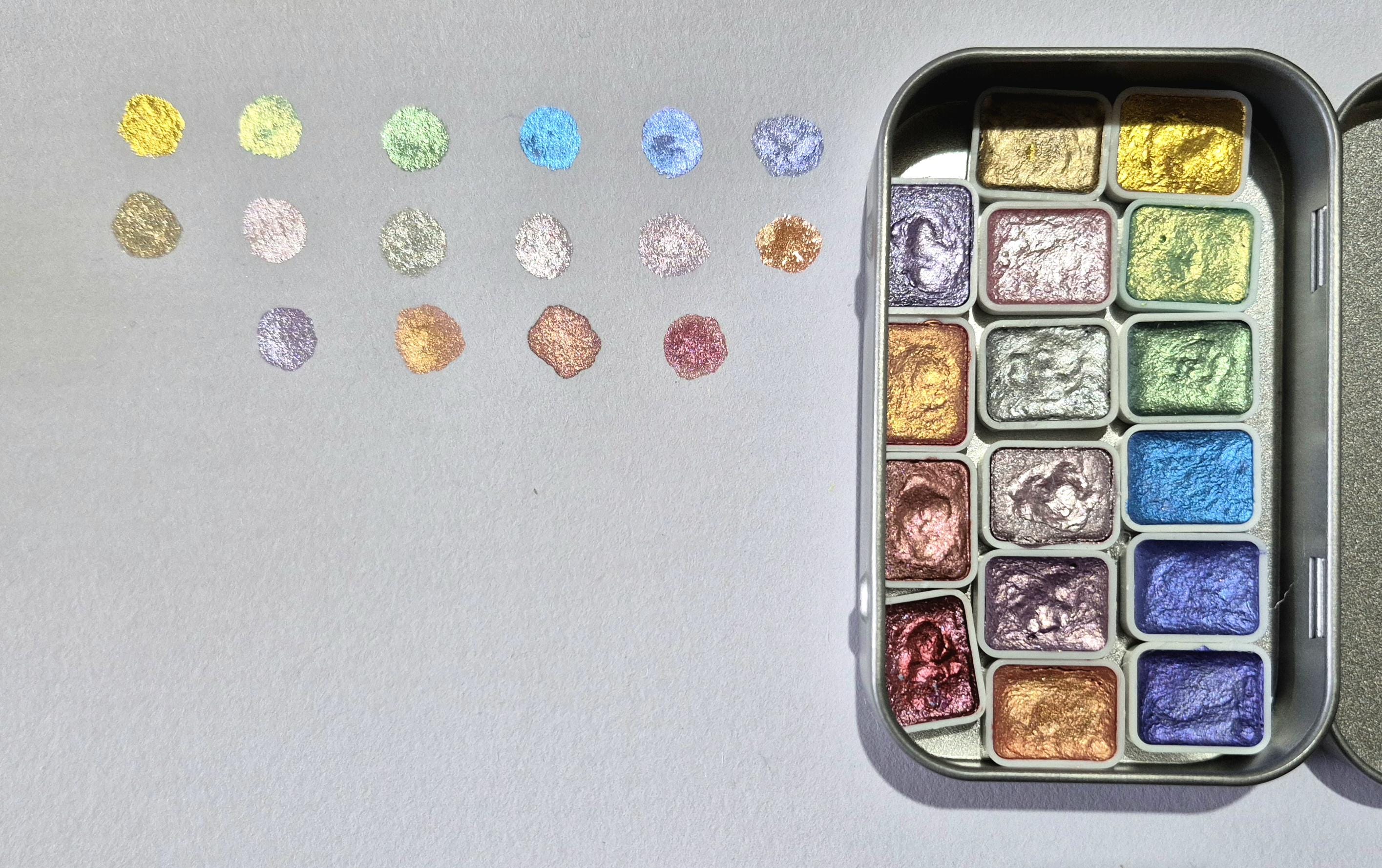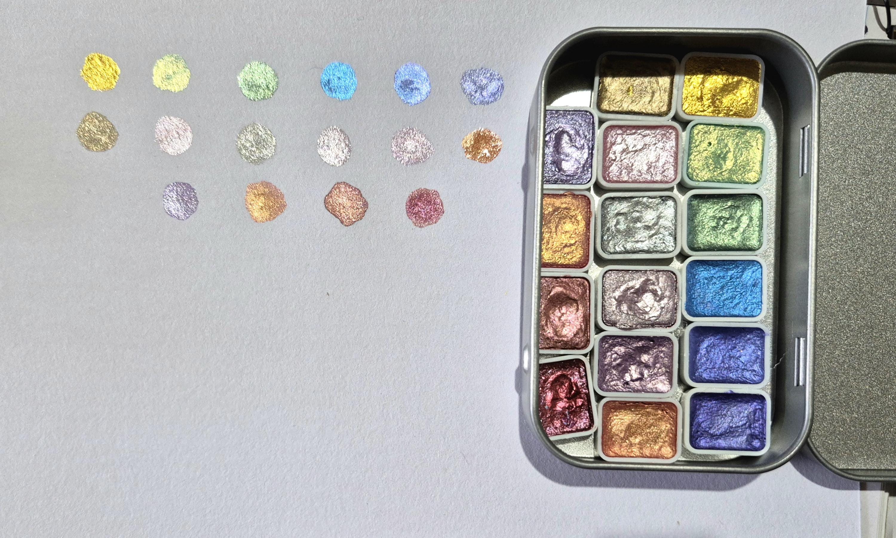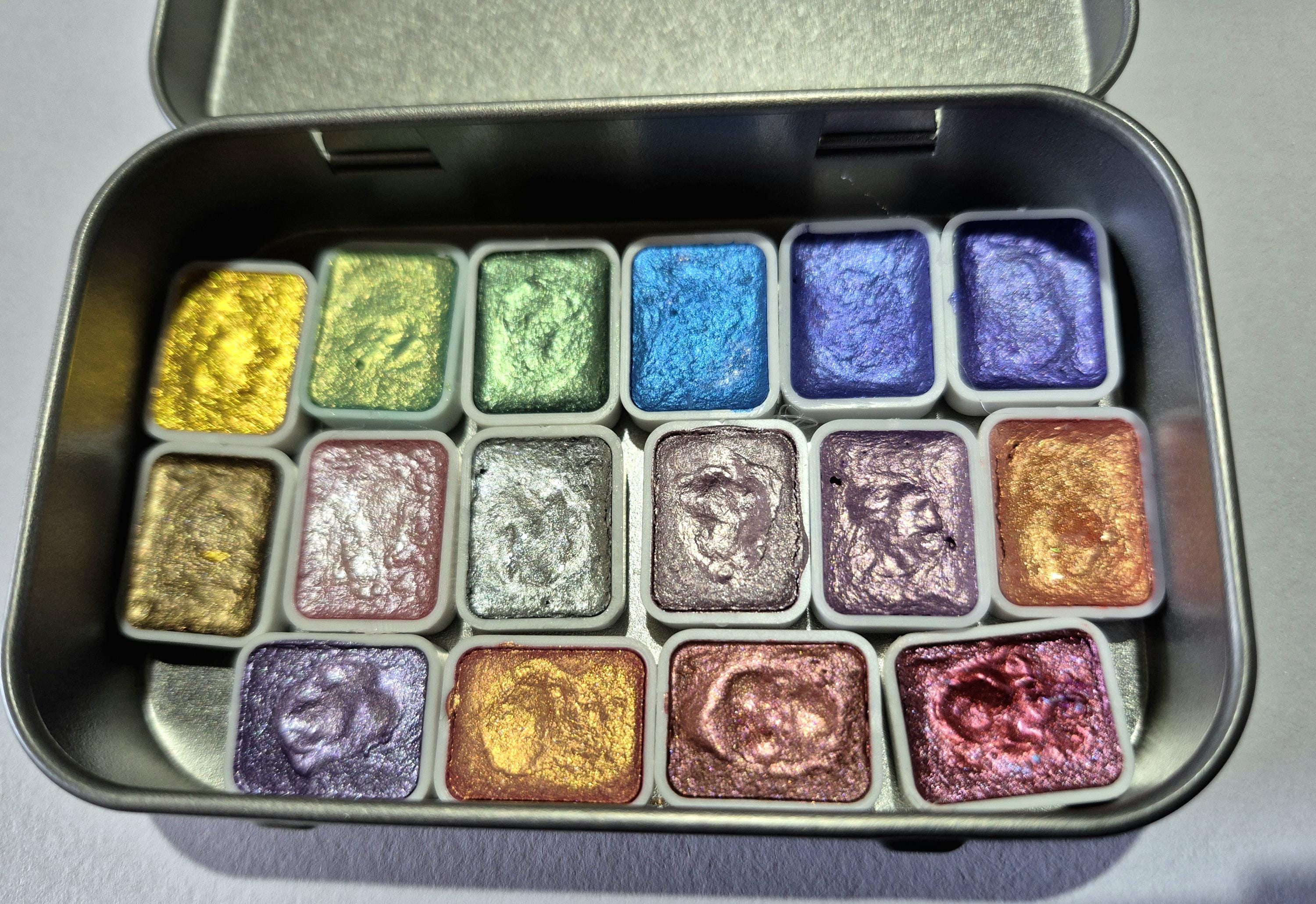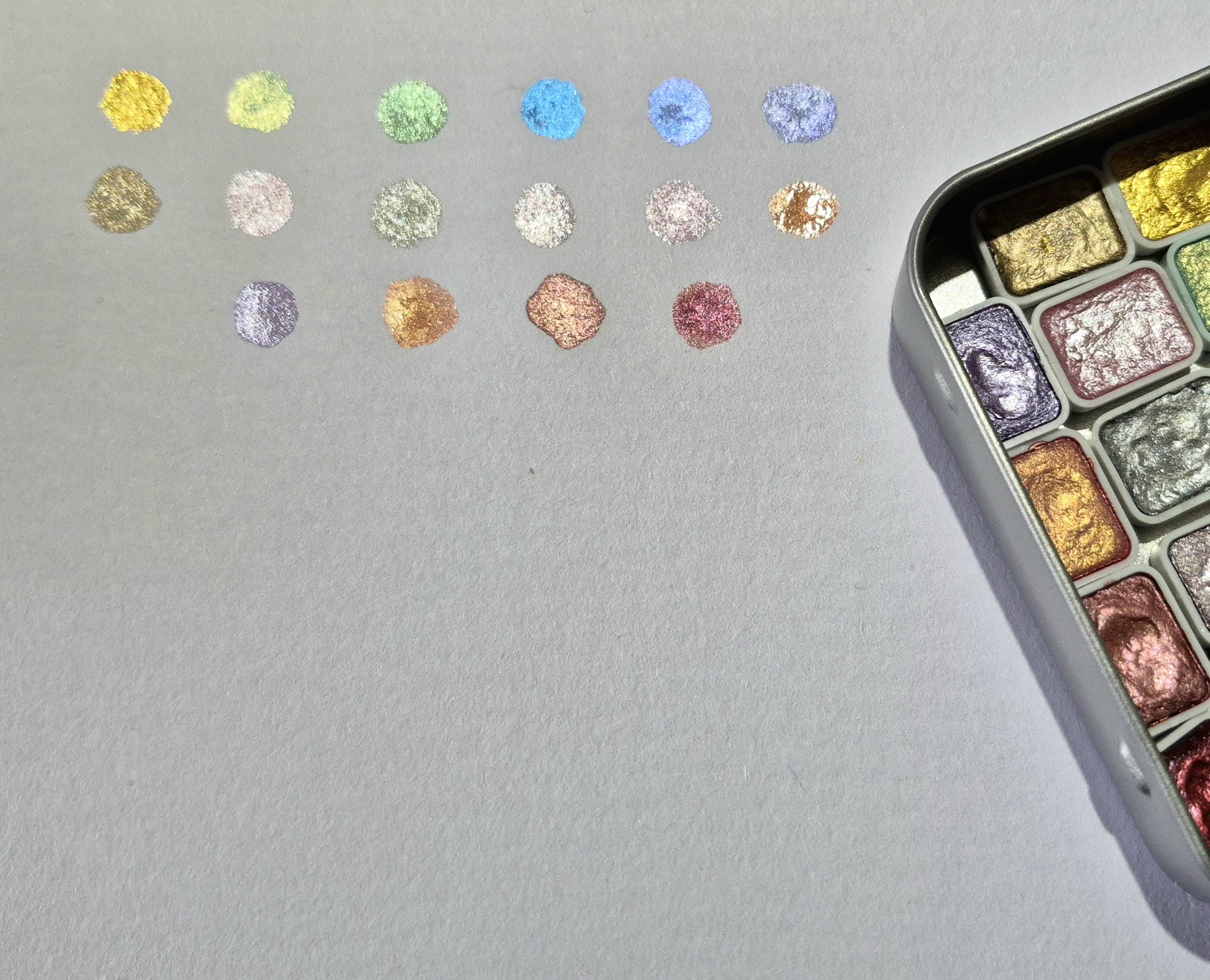 Watercolor Paints 16 Colors Solid 16 Watercolor Set Textured Pearlescent Pigment Metallic Glittering Portable Art Supplies.