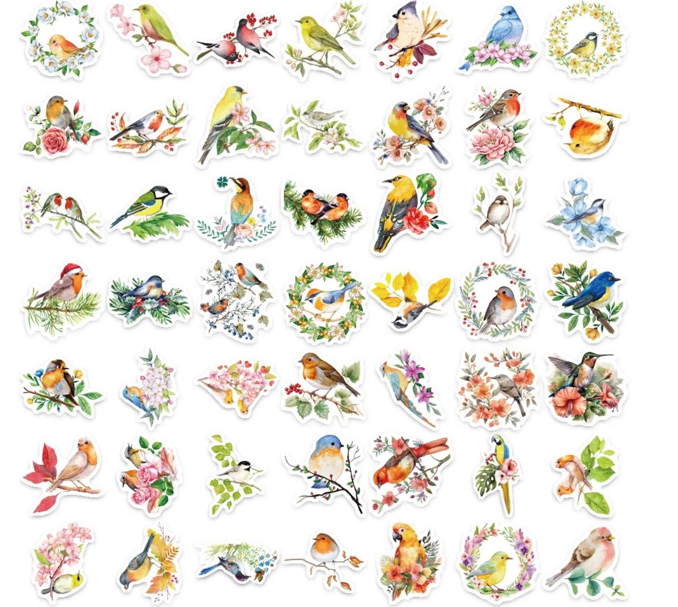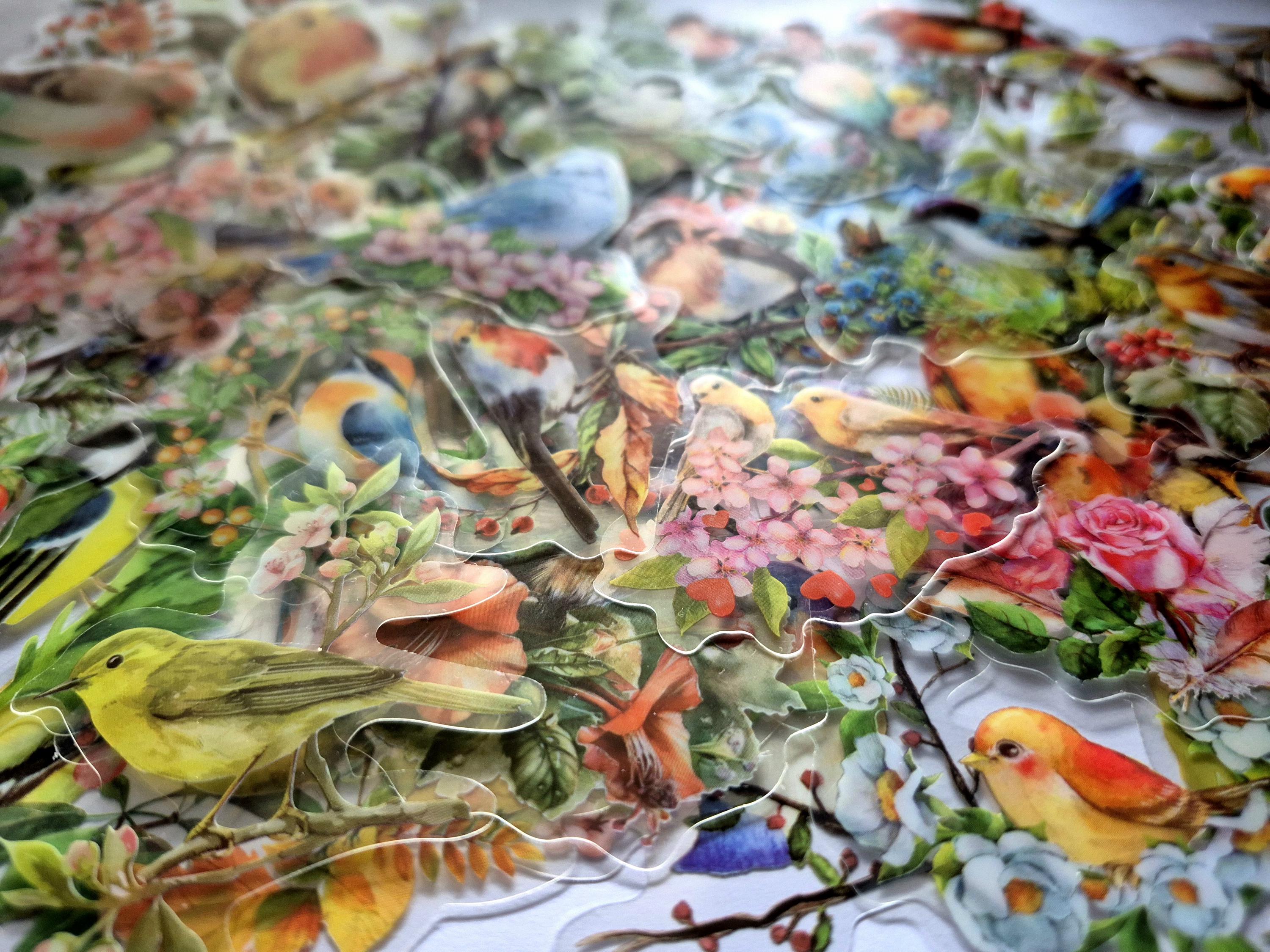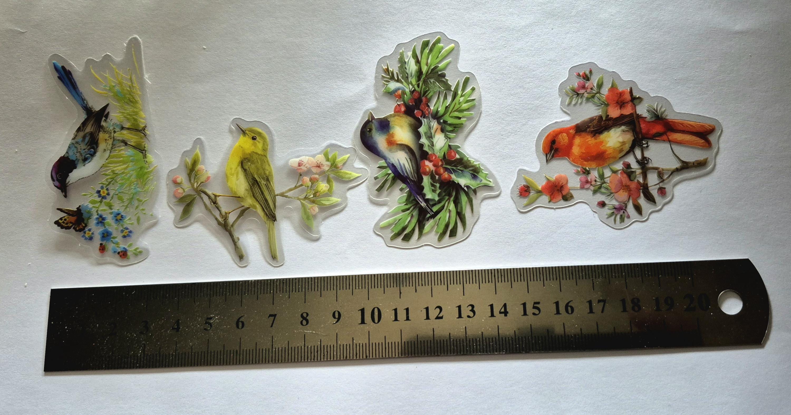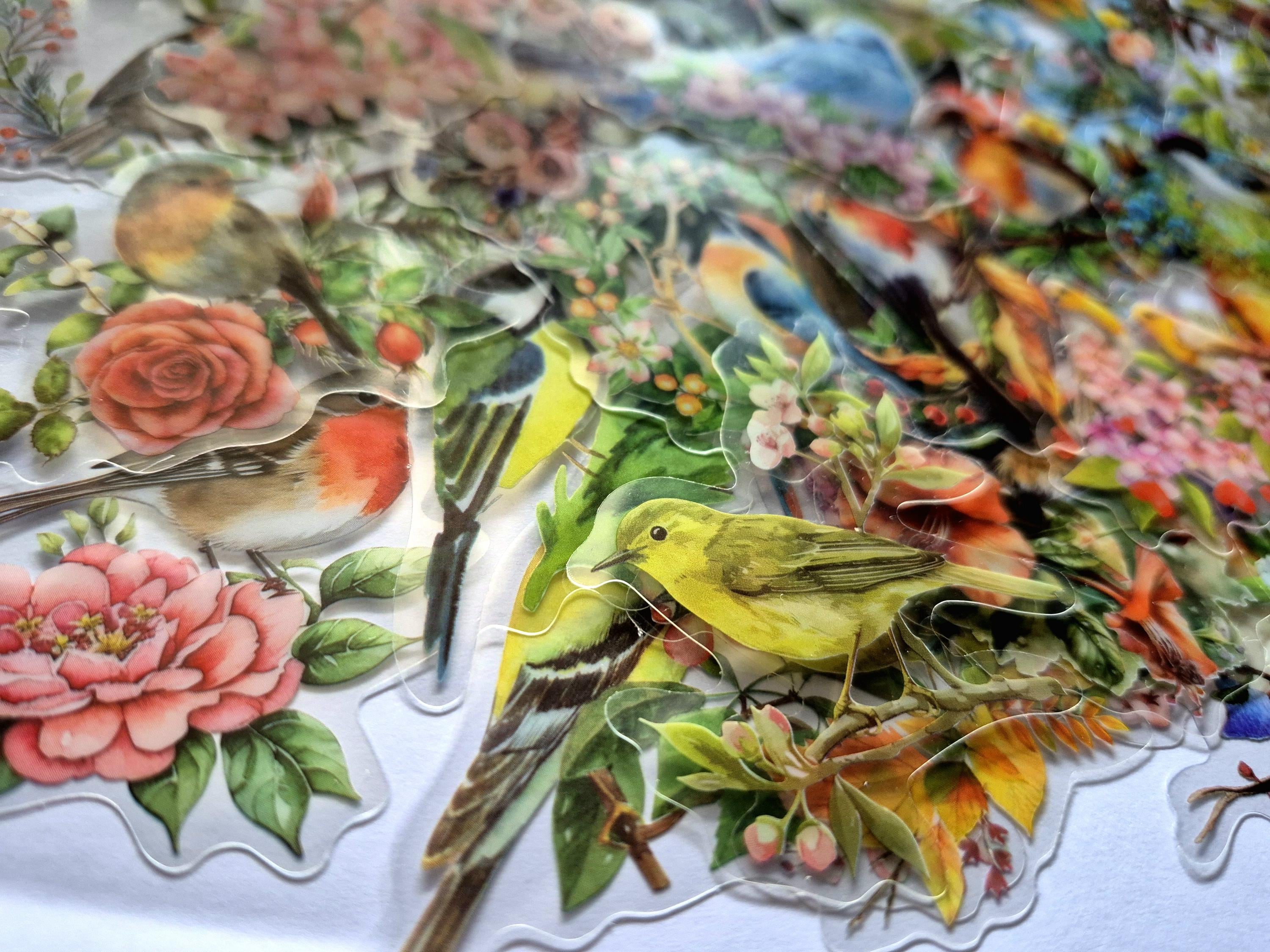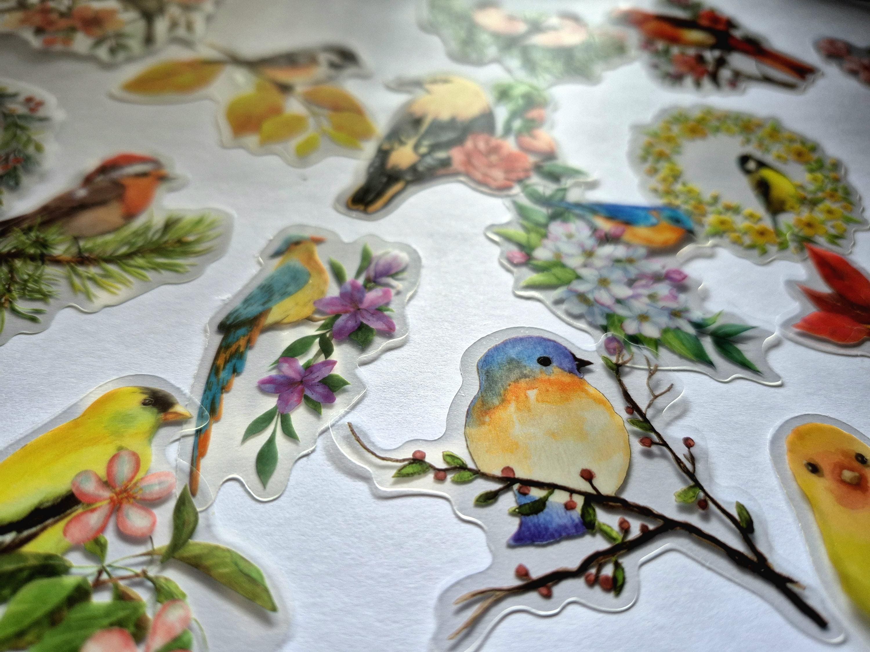 Realistic Birds and flowers Stickers, Educational Stickers, Plastic Stickers, Journal, Decorative Stickers, Scrapbooking, Label, Diary, Album.