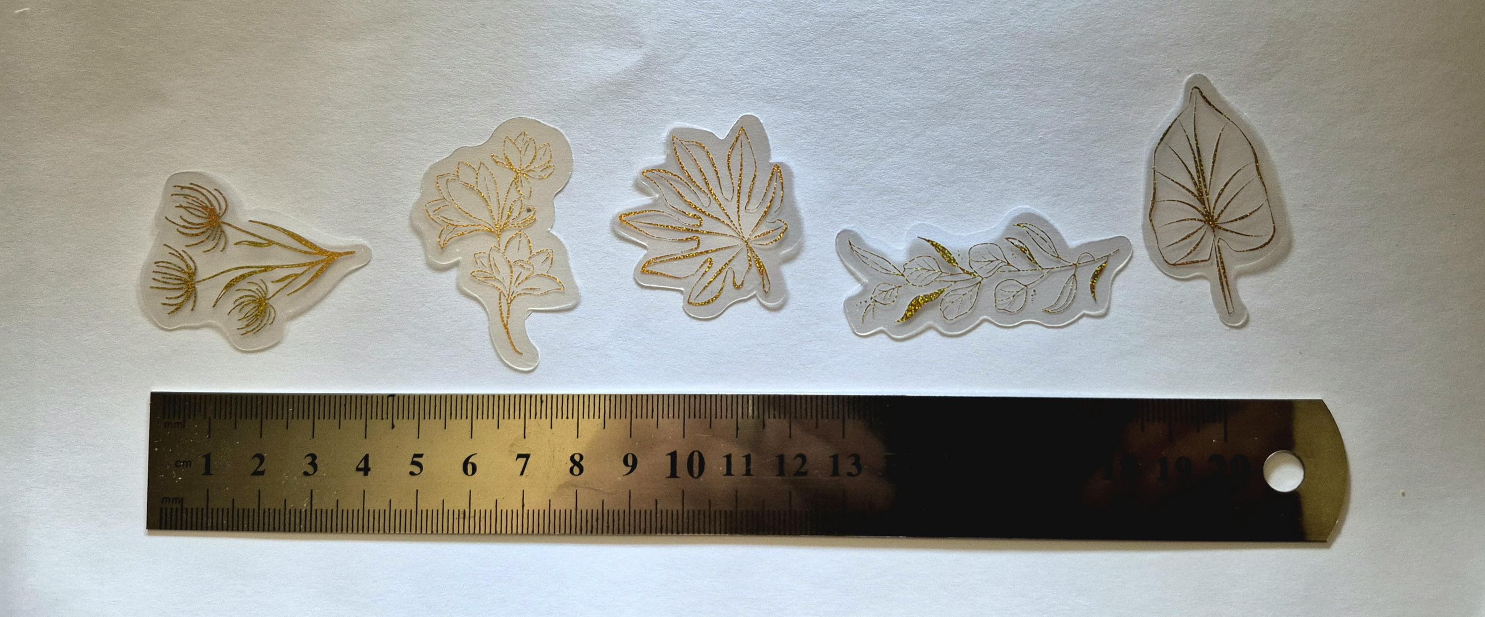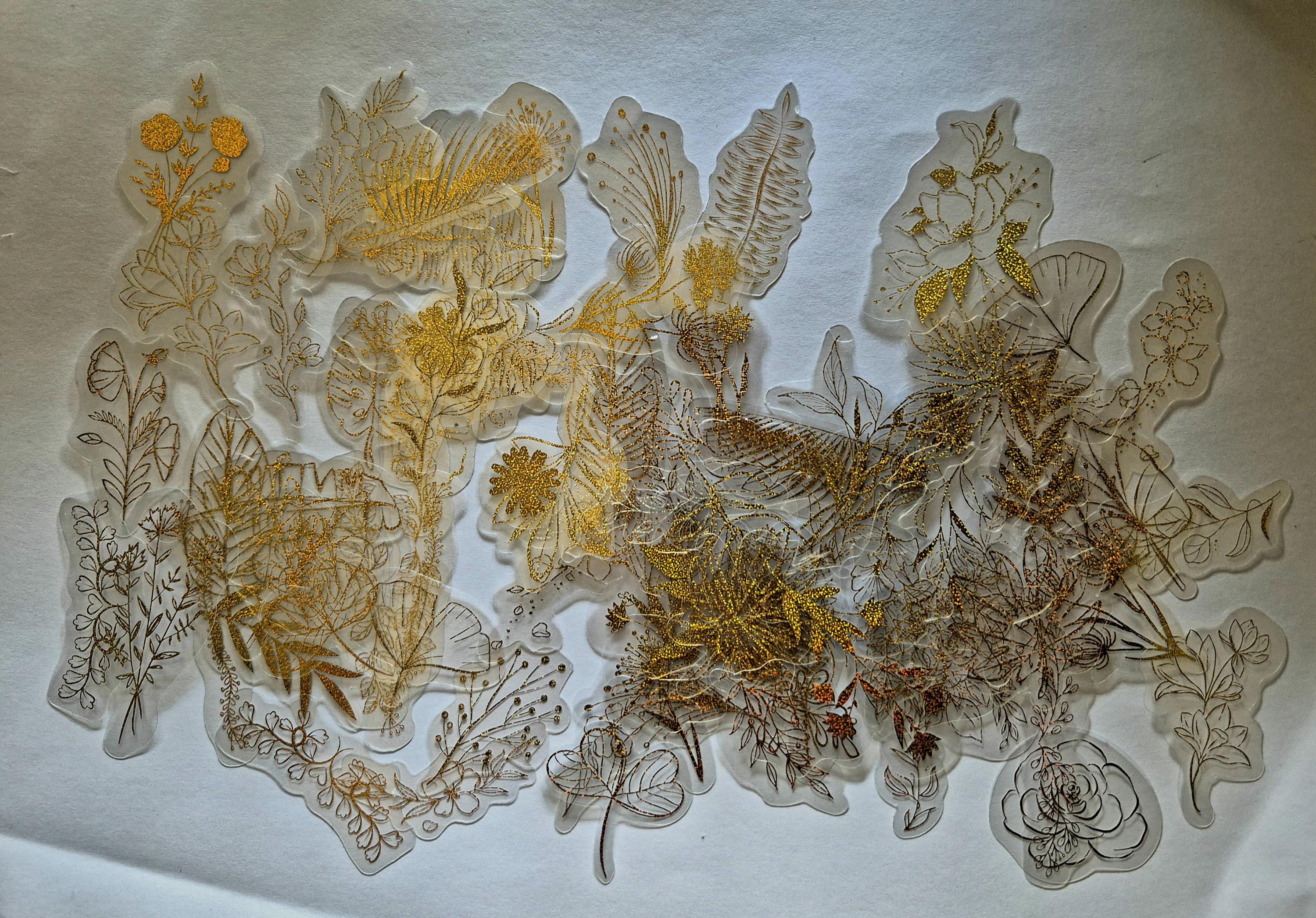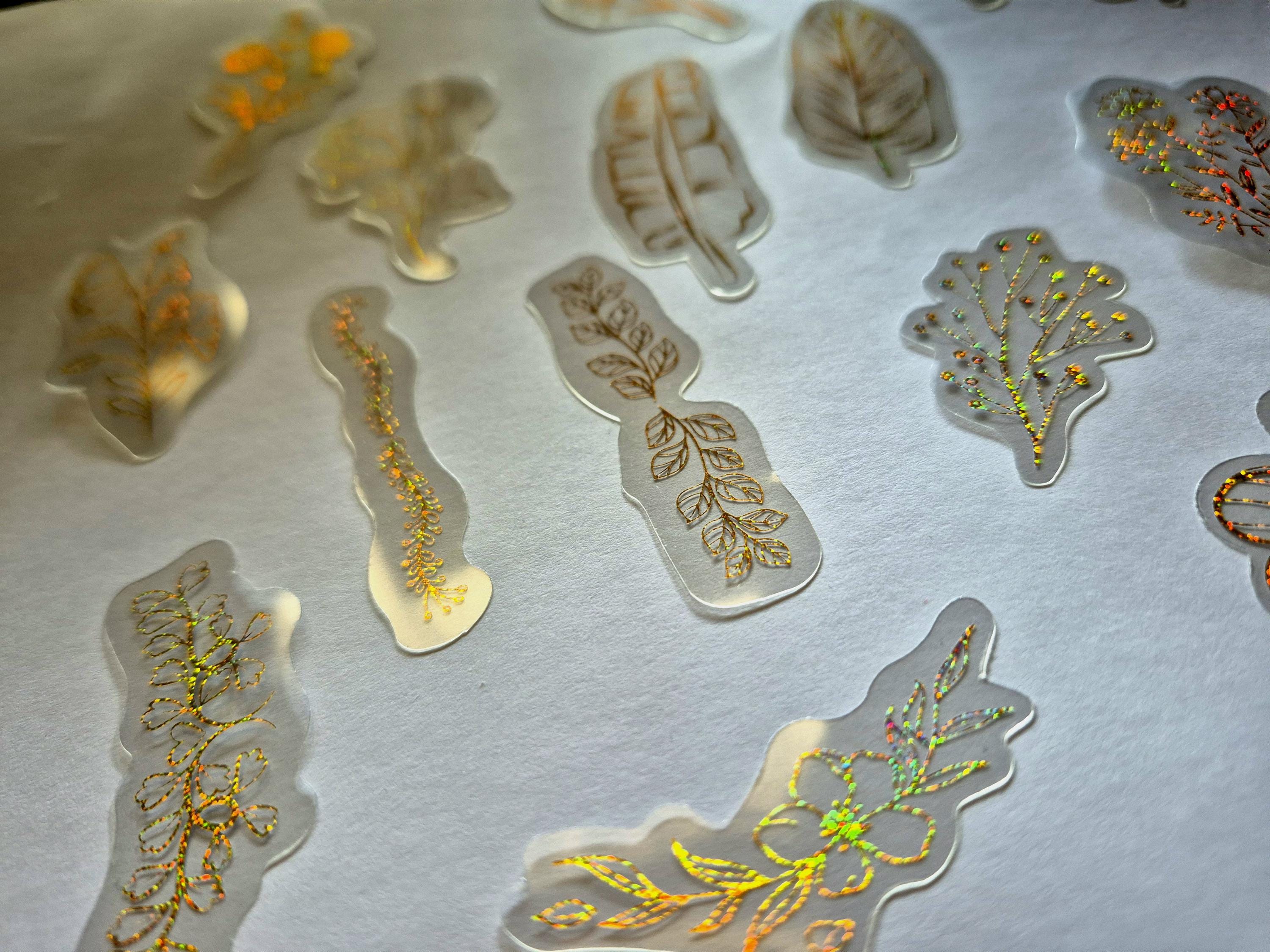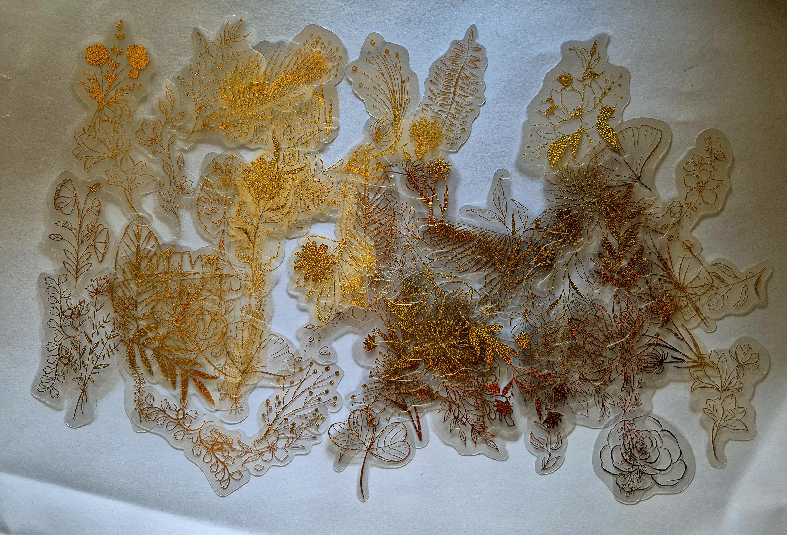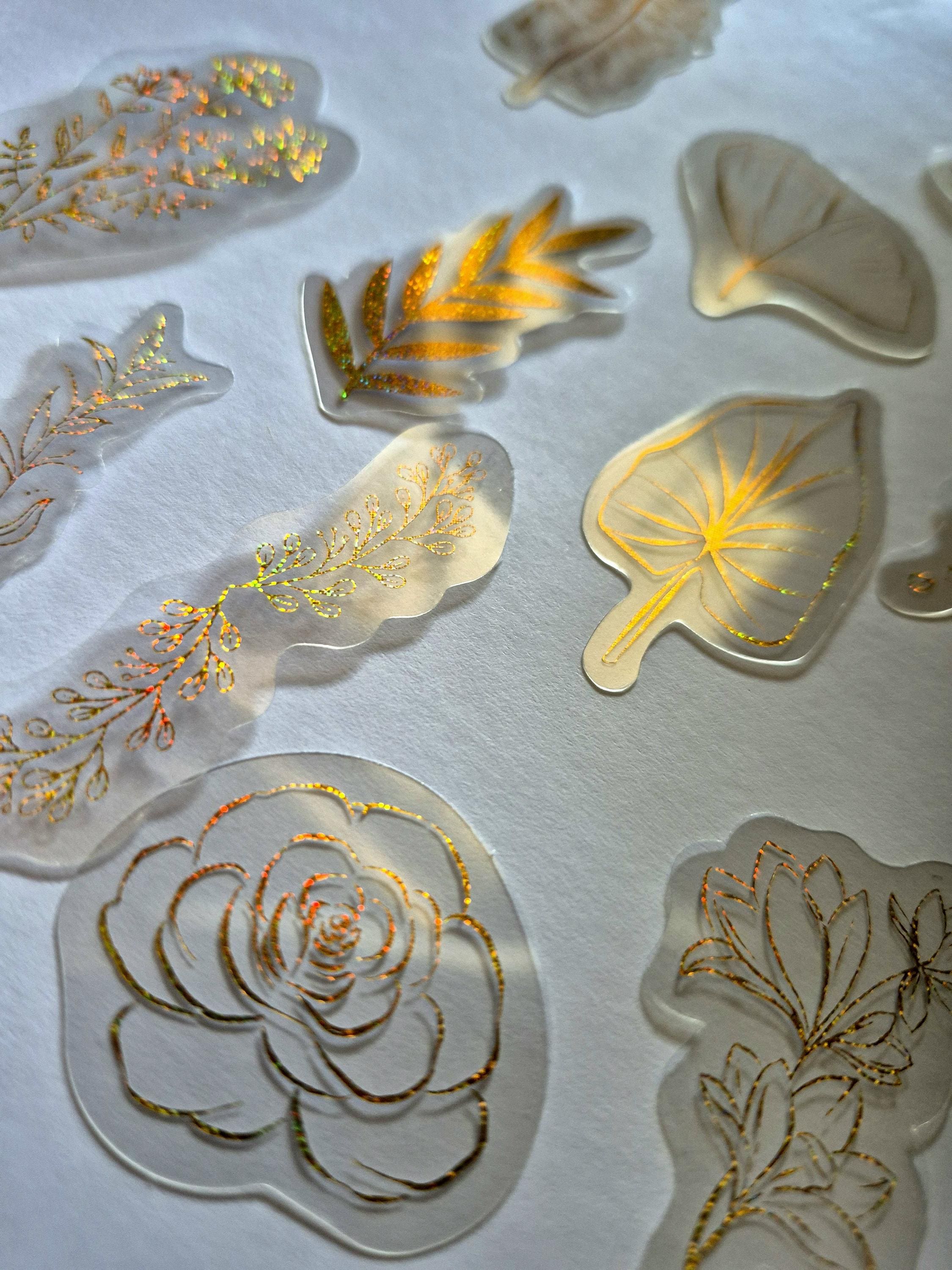Golden Glitter plants and leaves, PET Adhesive Stickers, Waterproof Transparent Label 40/80 pieces Colorful Laser PET Stickers for water bottle stickers aesthetic Scrapbooking Decoration DIY