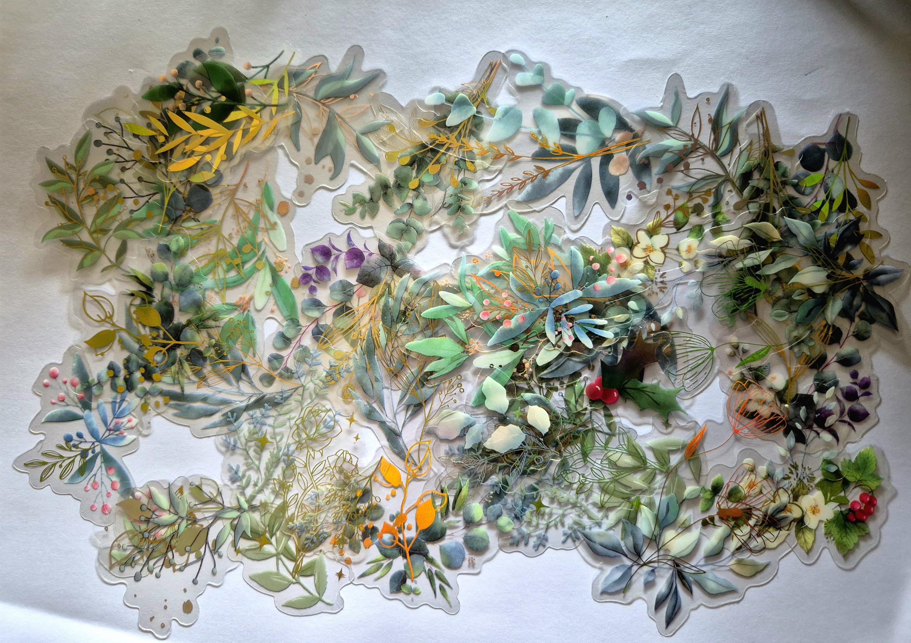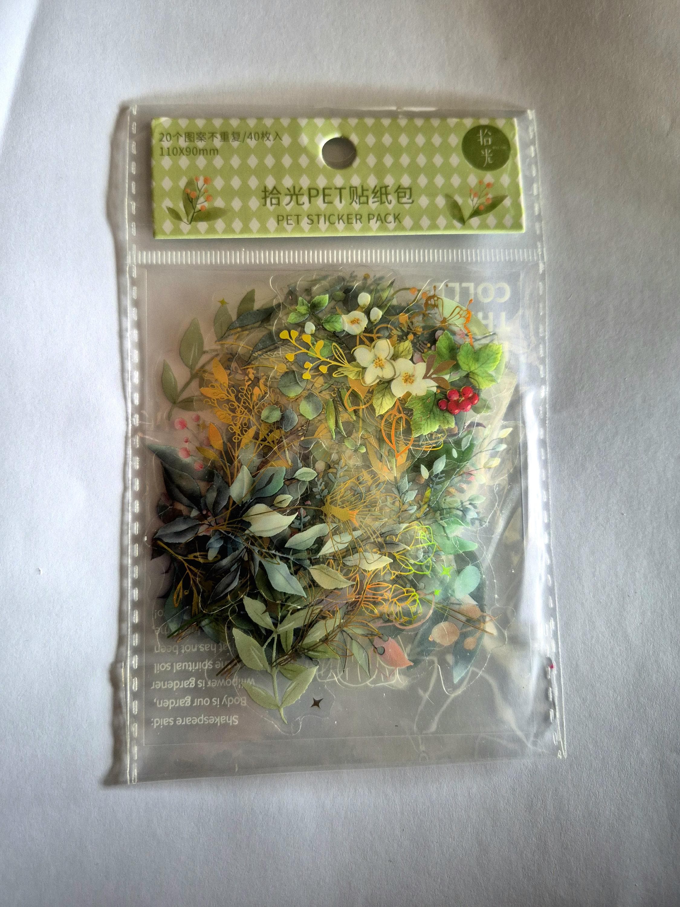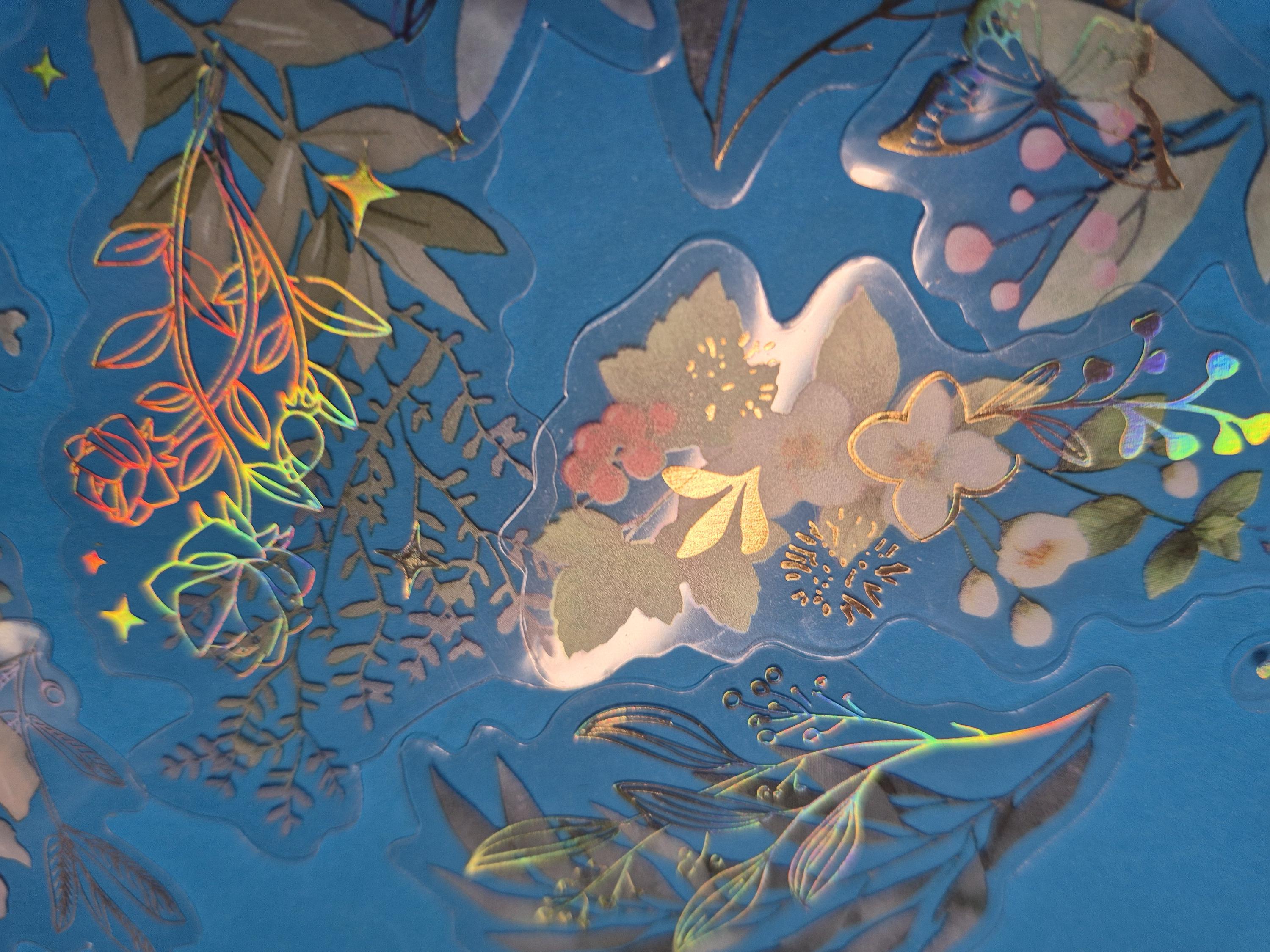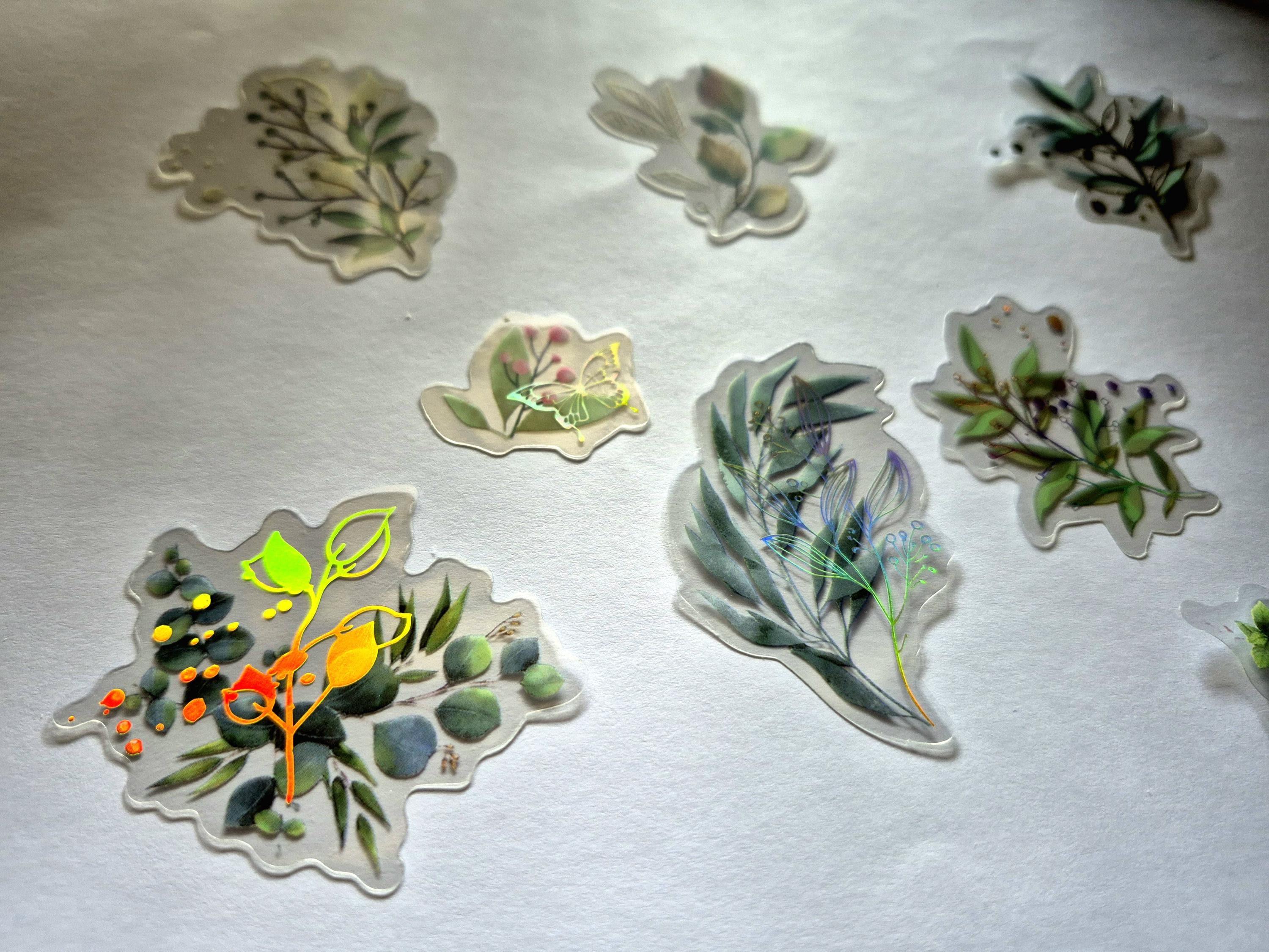 Golden Glitter plants, PET Adhesive Stickers, Waterproof Transparent Label 20/40 Sheets Colorful Laser PET Stickers for water bottle stickers aesthetic Scrapbooking Decoration DIY