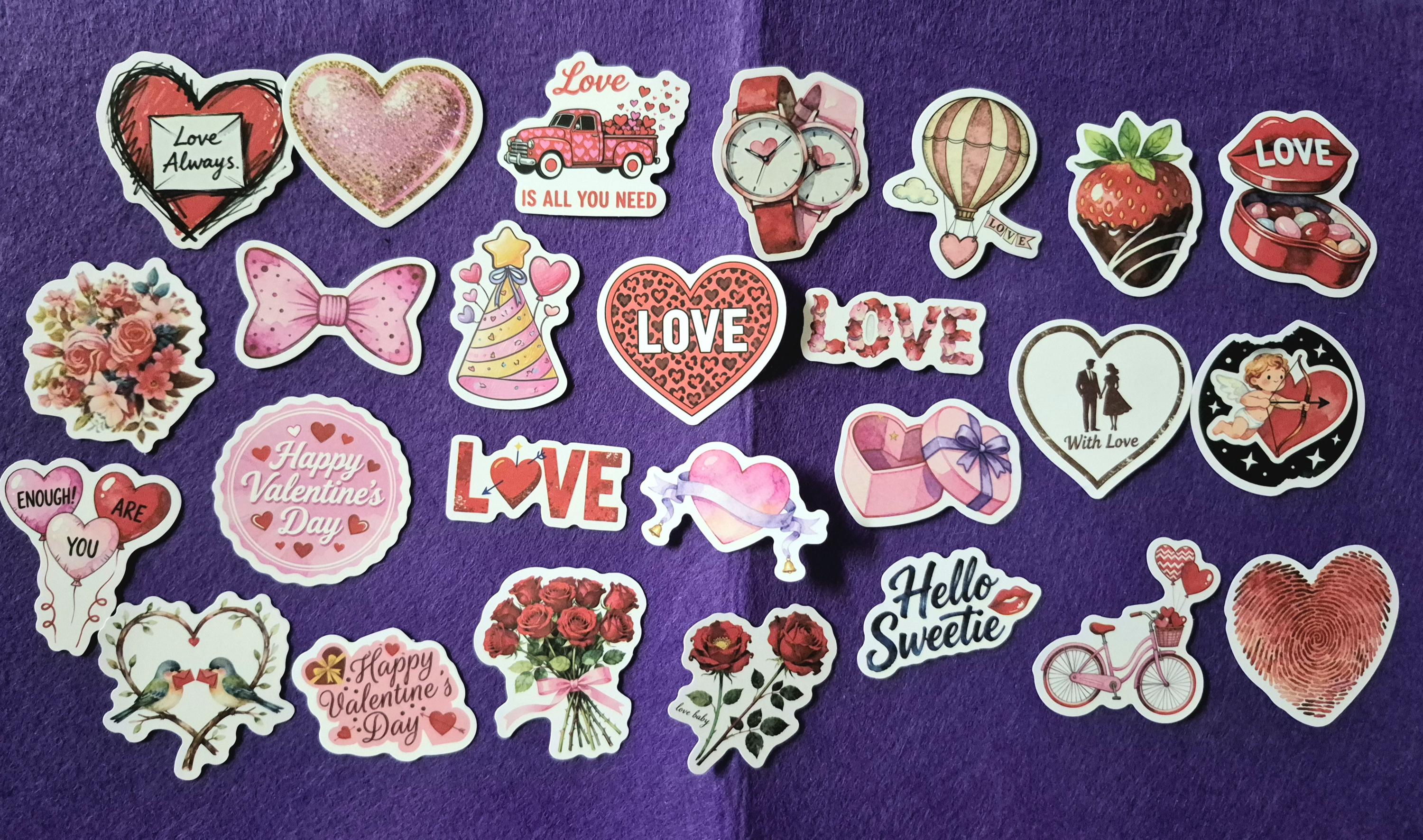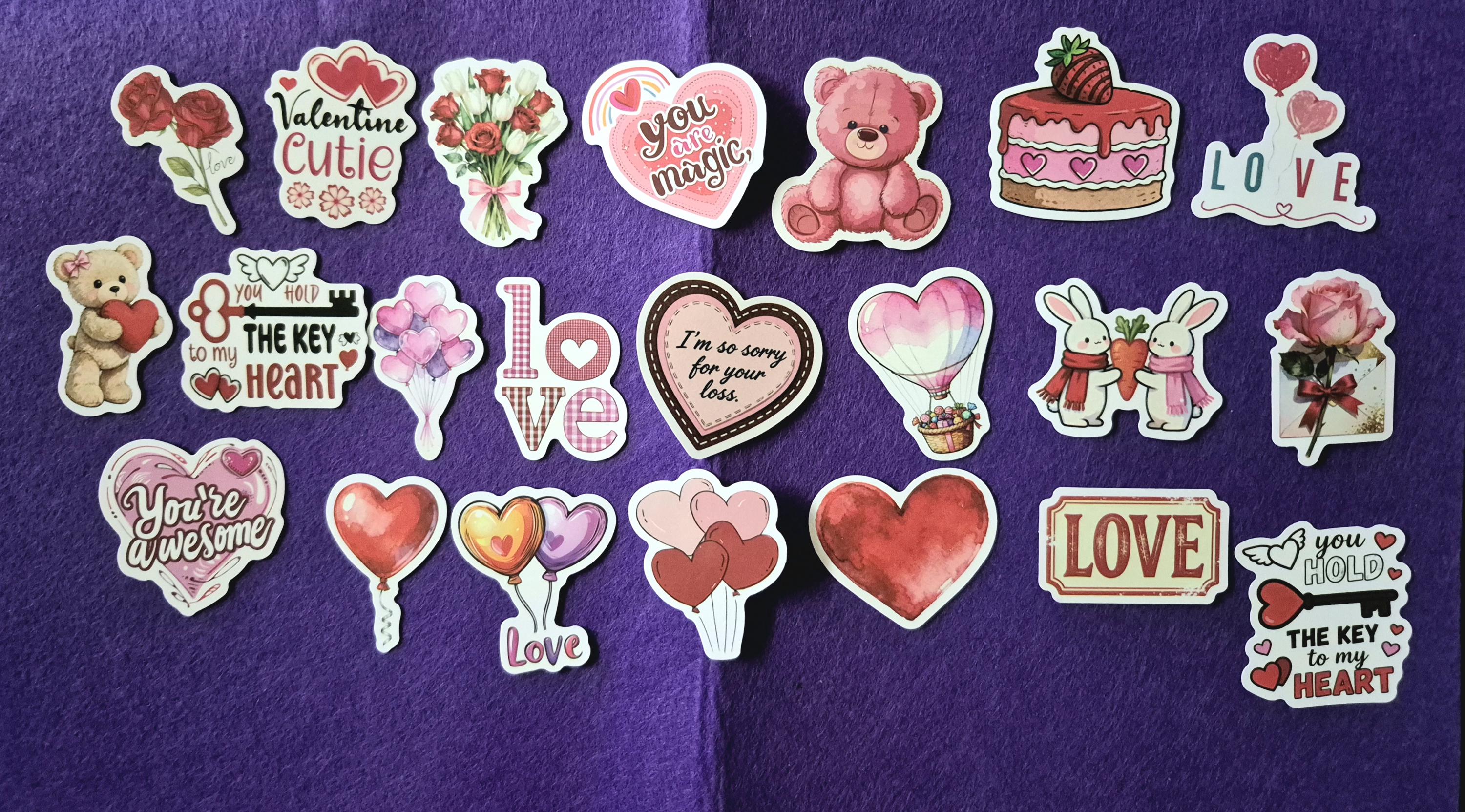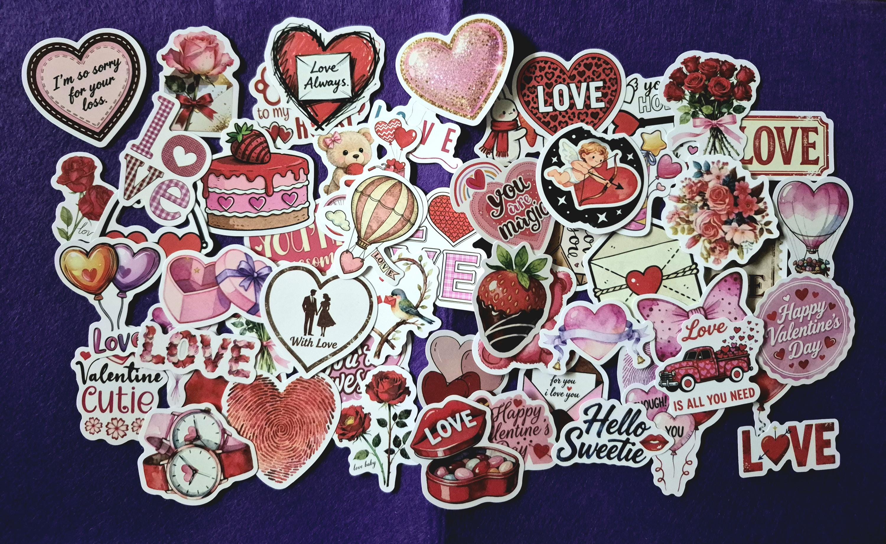 Colorful Valentine theme stickers, Vintage 25/50 pieces.