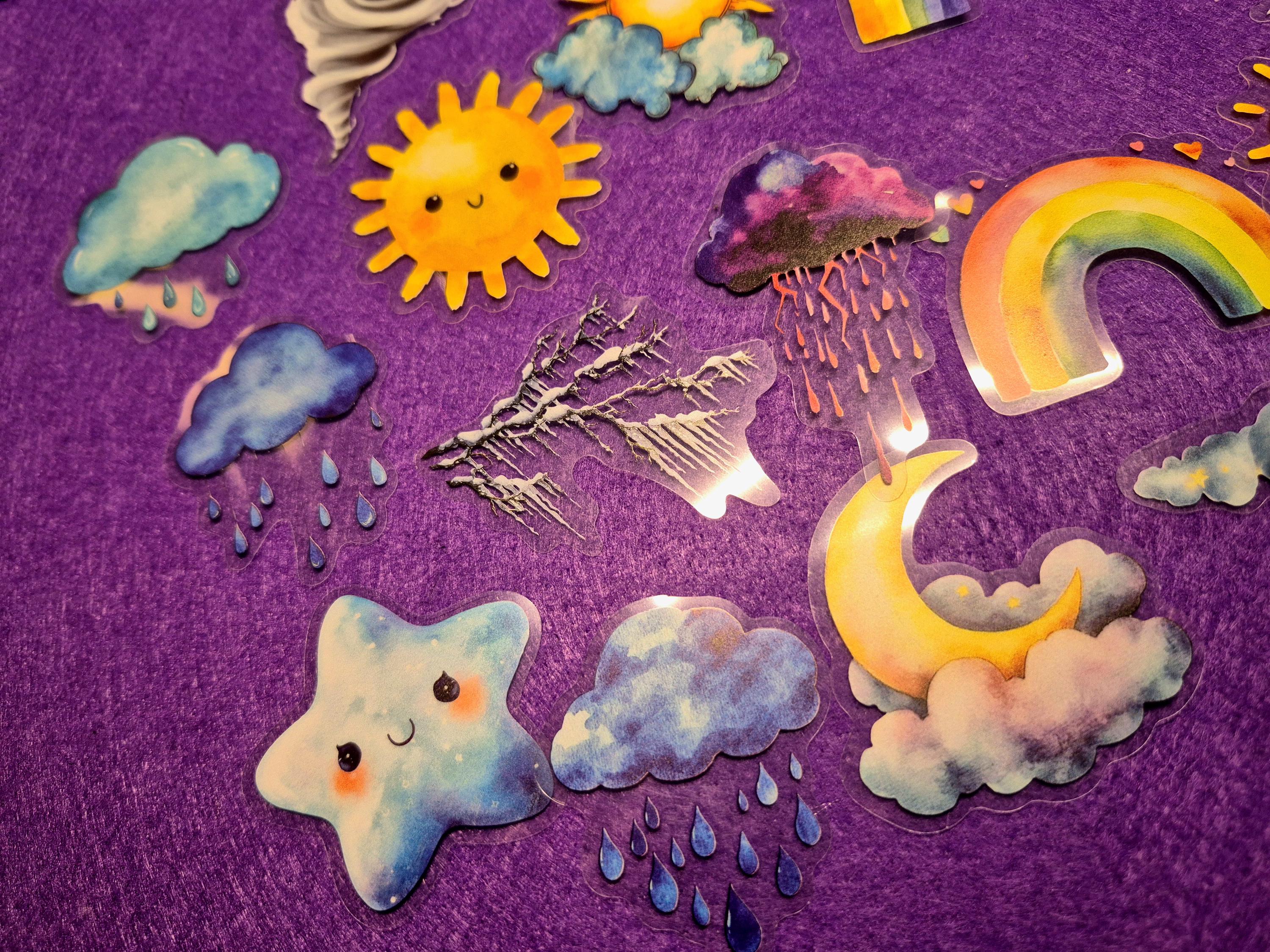 Colorful Weather, Storms, and Happy Sun.